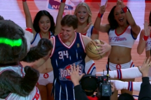 我们何时有?火箭球迷中场Logo三分打板命中 喜获25000美元大奖