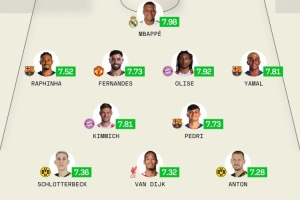 sofascore年度最佳阵:姆巴佩、B费、亚马尔领衔 凯恩哈兰德落选