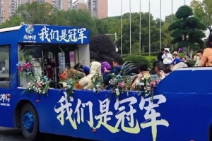 今年元月2日,永州公交公司的工作人员透露,去年12月27日晚永州队夺冠后,公交公司连夜筹备冠军巡游花车改造,成功将一辆即将报废的公交车改造成漂亮的冠军巡游花车。