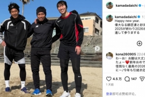 镰田大地晒与香川真司、长友佑都合影:与两位师父训练,迎接2026
