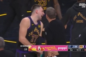 肘伤挺严重东契奇暂停时被助教拍了一下手臂 疼得龇牙咧嘴