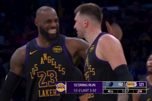 一波流?拉拉维亚压哨三分+詹姆斯突破上篮 湖人12-2打停灰熊