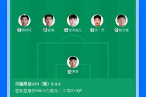 U23国足vs伊拉克首发对比:身价500万vs136万 平均年龄20.9PK20.6