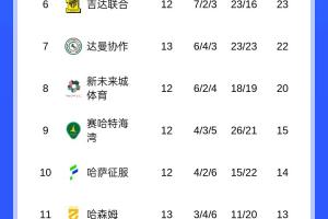 沙特联积分榜:胜利3轮不胜距榜首4分,新月13轮不败领跑