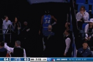 这球够硬!恩比德顶翻小卡特扣篮2+1 后者回更衣室