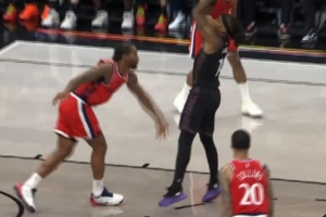 高难度!特伦斯·曼恩强攻老队友小卡 转身后仰中投命中