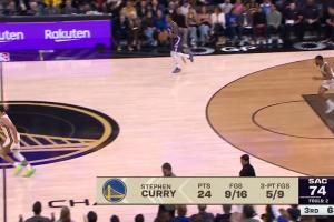 屁股老疼了!库里三分摔得四脚朝天 回头同一位置再中!