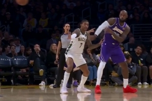 穿针引线!詹姆斯同样战术连续送出助攻 湖人2记三分打停雄鹿