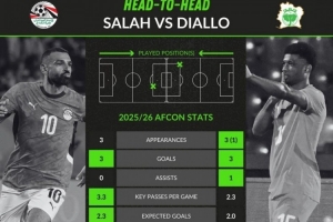 本届非洲杯关键数据对比:萨拉赫3场3球,阿玛德4场3球1助攻
