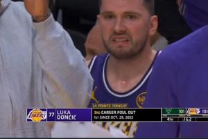 致命三分犯规六犯离场!东契奇满脸愤怒:傻X贱人