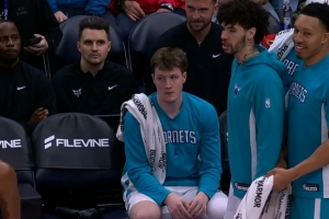格威笑得贼开心!三球替补席拿球调皮不给森萨博 裁判直接给T!