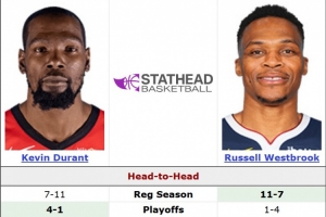 依旧热血!杜兰特常规赛面对威少7胜11负 季后赛4胜1负