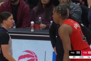 巴恩斯和马克西无球端推搡被吹犯规 前者疯狂向裁判抱怨被吹T