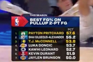 顶级基本功!普里查德两项命中率联盟第一 分别力压约基奇和SGA