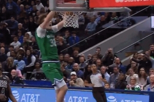 年轻气盛!克里斯蒂单手甩传很写意 弗拉格双手重扣打停篮网