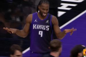 詹姆斯横传球直接塞入蒙克怀中 后者回头轰进45°追身三分!