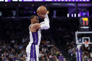 威少今天三分8中4 本赛季三分命中率34.5% 创生涯新高
