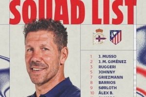 前锋:7-格列兹曼、9-瑟尔洛特、10-巴埃纳、11-阿尔马达、19-阿尔瓦雷斯、20-朱利亚诺·西蒙尼