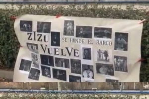 队危速归?皇马基地外有球迷张贴海报:齐祖回来吧!船要沉了