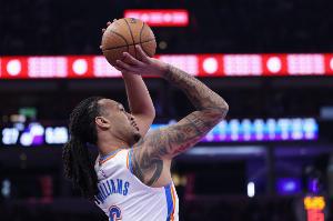 此役,雷霆内线杰林·威廉姆斯上半场进攻状态一般,但在下半场及时做出了调整。全场比赛他出战22分钟,10投4中,三分7投2中,罚球2罚1中,得到11分10篮板5助攻2盖帽的数据,没有失误,正负值+30全场最高。