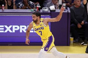 第一节,湖人后卫文森特外线神准,替补4分49秒三分3中3拿到9分1篮板,正负值+7。