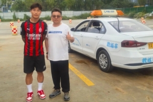 该教练在社媒写道:“泰山队,泰山队,泰山必胜。学车和踢球一样努力和认真!”