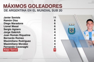 世青赛历史阿根廷射手榜:萨维奥拉11球,老马梅西6球,萨尔科4球