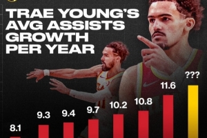 生涯前7年助攻数稳步提升!上赛季场均11.6次的特雷-杨还能提高吗