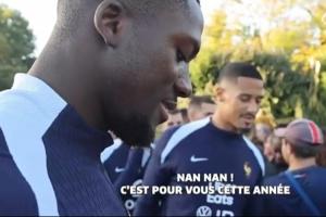 【开个玩笑🤣】法国队为球迷签名时,科纳特向萨利巴展示了一张他举起英超冠军奖杯的照片,并说道:“这是你吗?” 😅