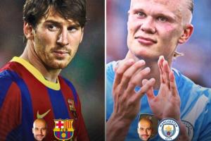 在瓜帅执教下联赛:梅西136场138球55助,哈兰德104场94球17助