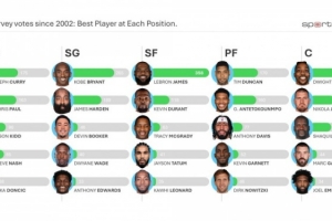 历年总经理调查各位置最佳球员:库里科比詹姆斯邓肯霍华德领衔