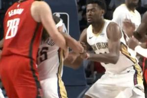 保护队友!老六想往前冲被申京直接架住腋下往后一扔险些再摔一跤