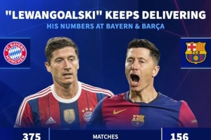 依然高效!莱万在拜仁期间375场344球,效力巴萨156场105球