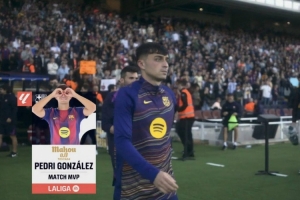 1进球1关键传球,佩德里当选巴萨2-1赫罗纳一役全场最佳