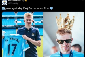 传奇开始,曼城官推晒照:10年前今天,国王德布劳内成为球队一员