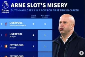 斯洛特执教生涯首次遭遇联赛3连败,此前5个赛季均未出现连败