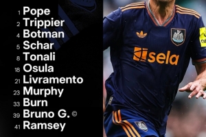 纽卡公布对阵利兹联首发:托纳利领衔,伊萨克继续缺战