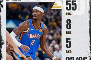 得分&罚球生涯新高+新赛季首个50分先生!SGA26罚狂砍55分8板5助