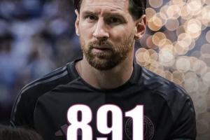 梅西前天与迈阿密国际续约至2028年底,今日便双响,生涯进球数来到891球,距离千球里程碑还有109球。