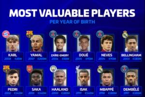 体育资讯10月27日讯 德转统计了各年龄段身价最高球员,其中,梅西、C罗、哈兰德、姆巴佩等人在列。