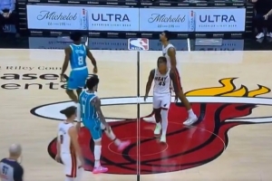 这松弛感没谁了!三球秀脚法“直接”爆头小米切尔 队友看懵了