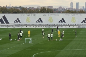 该记者透露:“皇马对阵瓦伦西亚之前的最后一次训练。卡瓦哈尔、吕迪格和阿拉巴缺席。小将弗兰-冈萨雷斯和梅斯特雷参与训练。”