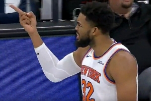 唐斯转身顶倒史密斯抛投命中被吹进攻犯规 尼克斯挑战成功变2+1