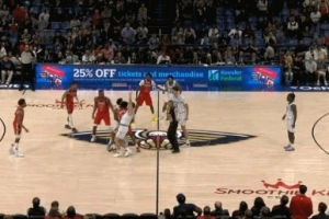 这么“激烈”!黄蜂VS鹈鹕开场跳球后 墨菲和塞克斯顿争球&再跳球