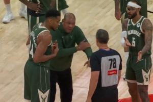 气疯了!不满字母哥被打+被撞没响哨 老里找裁判愤怒投诉