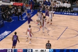 马尔卡宁跟进压哨上篮打进 爵士反超活塞领先结束首节