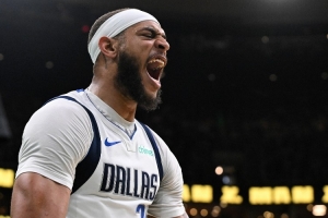 都挺拼!索汉和费尔斯抢地板球发生小口角 但很快被裁判分开