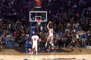 大将之风!康宁汉姆预判包夹抢冲内线 高难度转身跳投命中关键2分