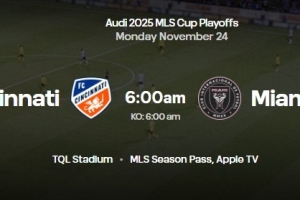 官方:辛辛那提vs迈阿密国际将在11月24日周一早晨6点进行