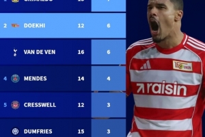 体育资讯11月11日讯 欧洲五大联赛有着一些带刀后卫属性的球员,格里马尔多、多克希等人是其中的佼佼者,德国转会市场盘点了本赛季五大联赛进球最多的后卫,格里马尔多以7球居首,多克希、范德芬以6球并列次席。